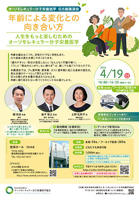 一般講演会「年齢による変化との向き合い方|人生をもっと楽しむためのオーソモレキュラー分子栄養医学」|2026年4月19日(日)14:00~16:30一般講演会「年齢による変化との向き合い方|人生をもっと楽しむためのオーソモレキュラー分子栄養医学」|2026年4月19日(日)14:00~16:30